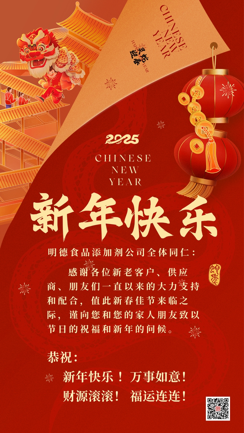敬告:尊敬的客戶,明德食品添加劑2025年春節(jié)假期2025年01月25日至02月04日休息,期間暫停發(fā)貨,敬請留意!物流已暫停接貨,如有需求請先和客服經(jīng)理聯(lián)系,請勿直接下單,謝謝!