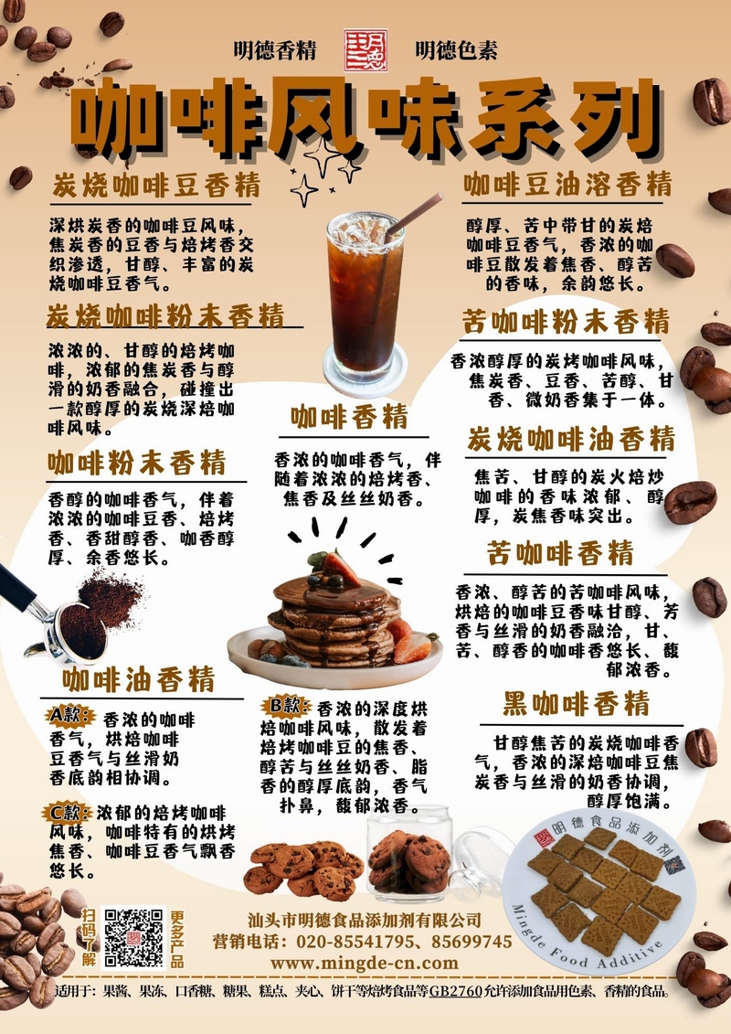 明德咖啡風(fēng)味系列香精 | 多層咖啡醇香 覆蓋豐富應(yīng)用場(chǎng)景汕頭市明德食品添加劑有限公司推出的咖啡風(fēng)味系列香精,涵蓋多種焙炒、奶香、焦糖及深度烘焙調(diào)性,滿足飲品、烘焙、糖果、乳制品等多領(lǐng)域的咖啡風(fēng)味需求,為B端客戶提供穩(wěn)定、真實(shí)的咖啡香氣解決方案。