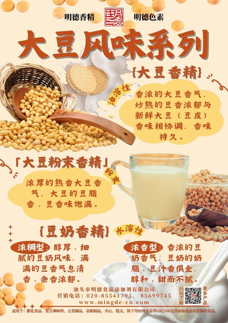 如需獲取不同版本風味樣品或配方方案,歡迎聯系明德團隊。我們致力于為食品工廠提供真實、安全、高性價比的香精解決方案。汕頭市明德食品添加劑有限公司推出的大豆風味系列香精,覆蓋大豆香精、大豆粉末香精、豆奶香精等多種調性,風味真實,留香穩(wěn)定,適用于膨化休閑、復合調味、豆制品及飲料等B端工廠,幫助快速打造具有記憶點的大豆類風味。
