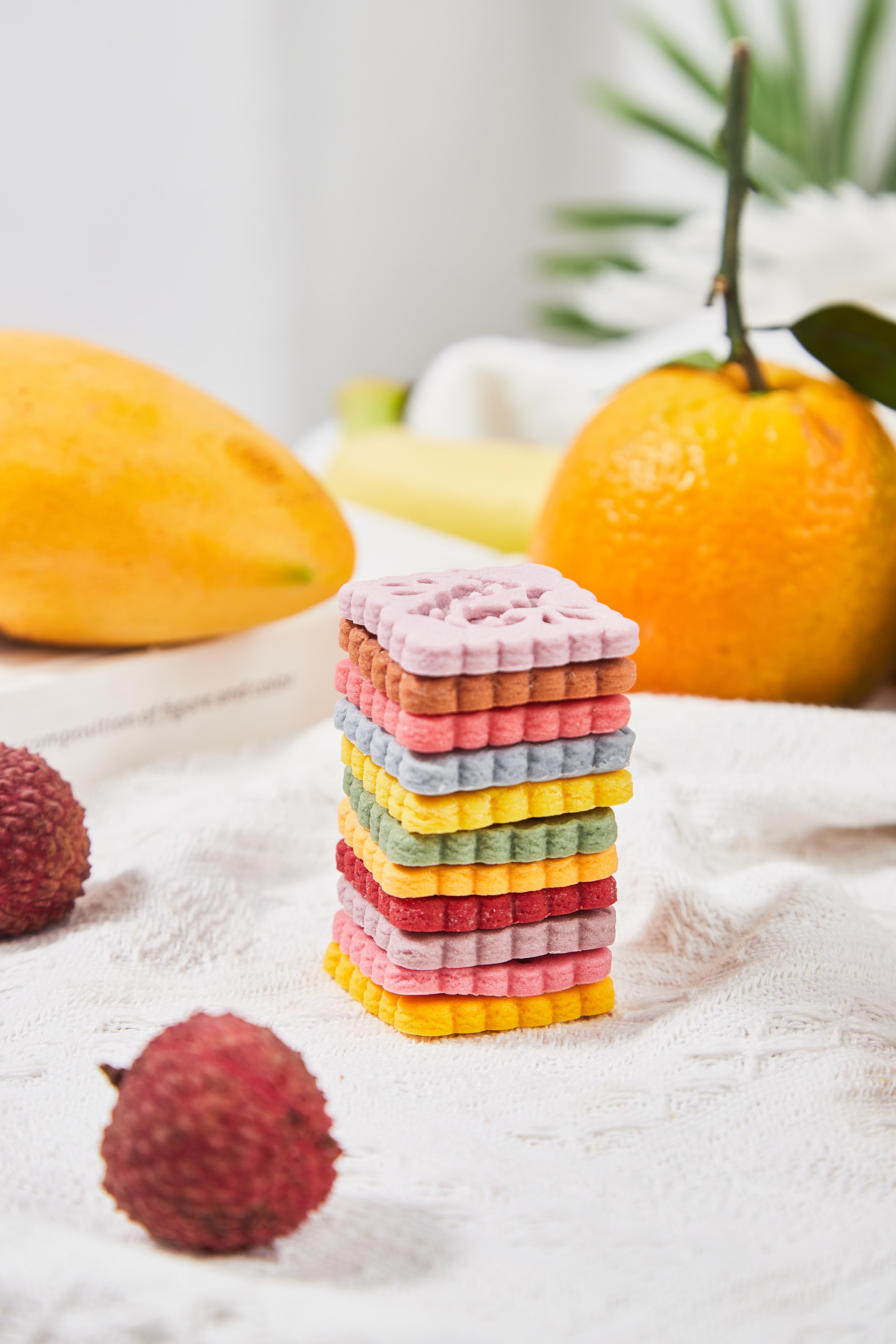 而通過產品復配,明德食品開發(fā)出了一套顏色穩(wěn)定、“拿來即用”的天然色素產品,包括梔子藍、梔子黃、胭脂蟲紅、胭脂樹橙等。產品具有優(yōu)異的耐熱性能,廣泛適用于馬卡龍、彩色餅干、餡料等烘焙產品。