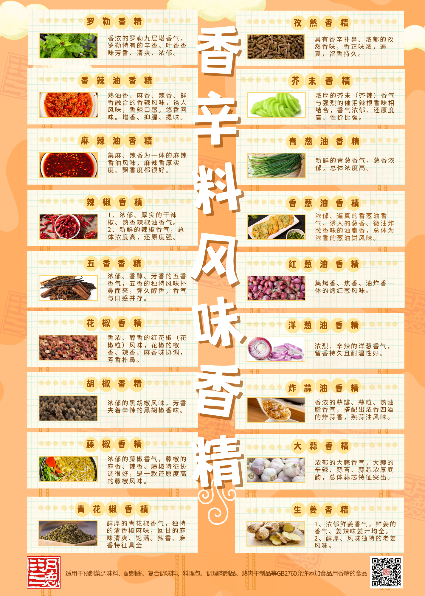 明德香精擁有羅勒、孜然、芥末、香蔥油、五香、花椒、洋蔥等多種香辛料風味,產品適用于預制菜調味料、配制醬、復合調味料、料理包、調理肉制品、熟肉干制品等。